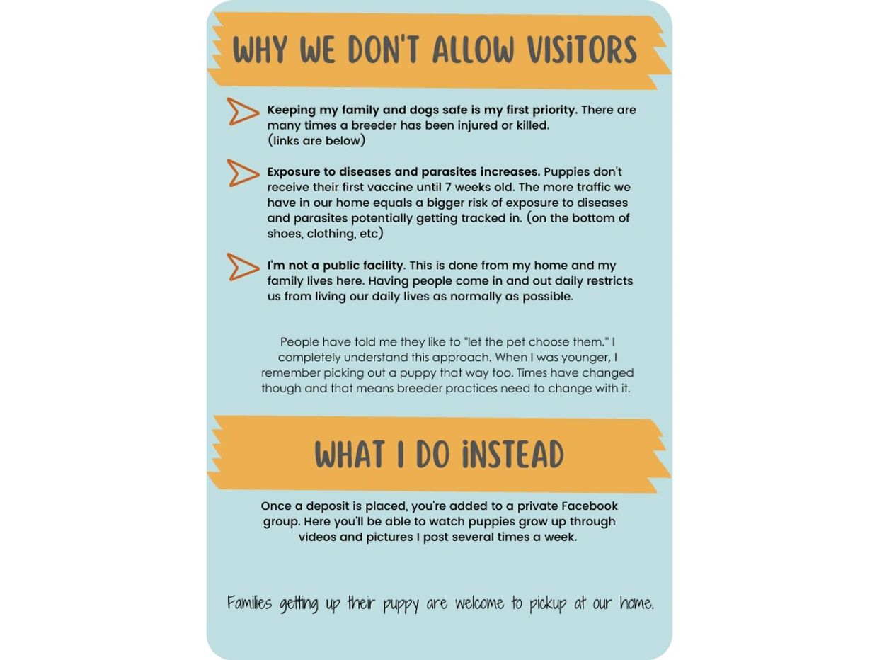 Deposits are $300 and go towards the purchase price of your puppy. They're non-refundable but are transferable to another puppy or litter.