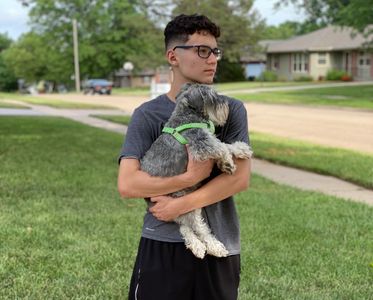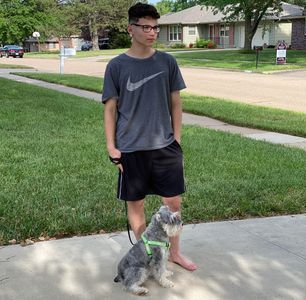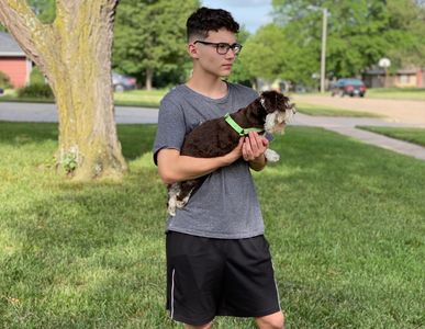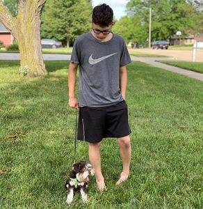 My son graciously helped model with the dogs. My son was about 5' 5" at this time...just so you can get an idea of the sizes.