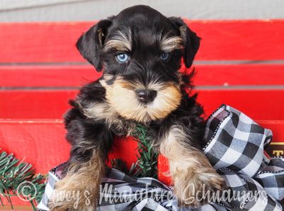 Miniature Schnauzers will need groomed every 4-8 weeks for the rest of their life. That means they need to be comfortable with people clipping their nails, grooming their face and body, and it helps at vet appointments too! You don't want him nipping or barking at your vet or groomer. (have you ever had to have TWO people to clip nails? It's not fun!)